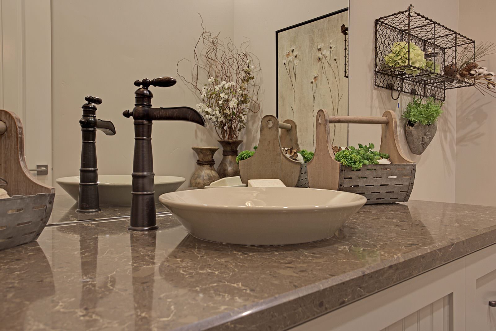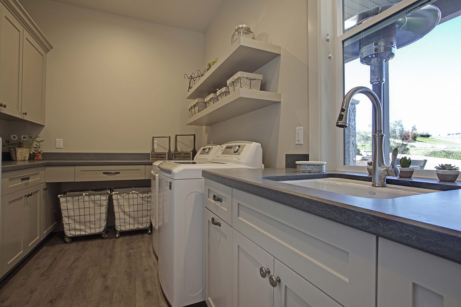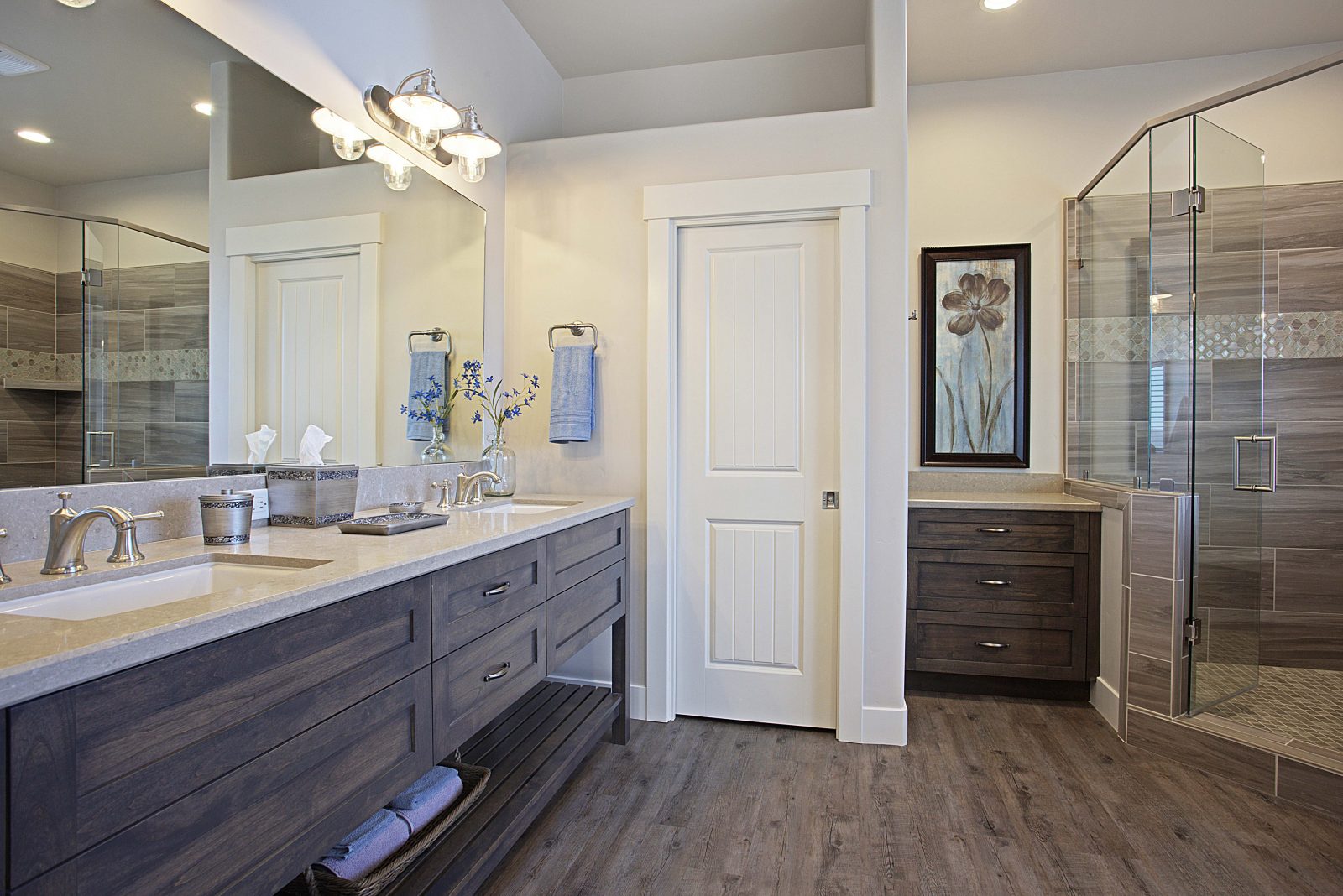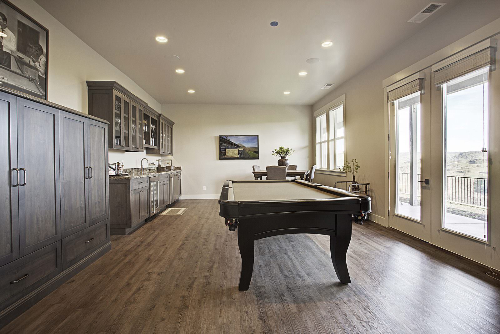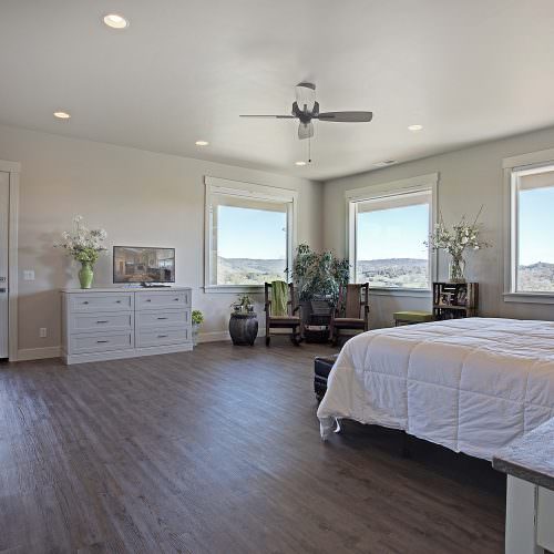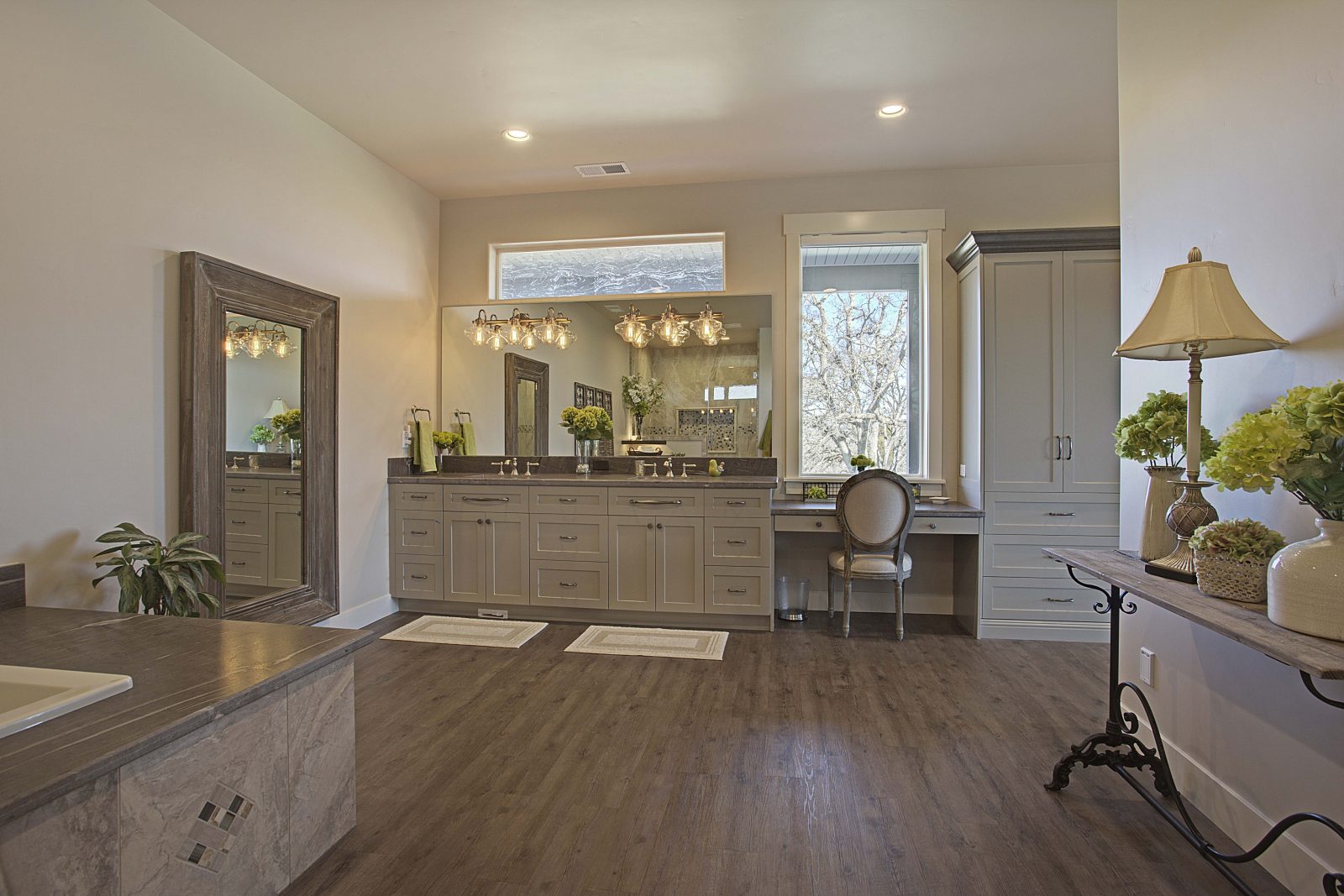 This 5,000 s.f. received a complete interior remodel and was a challenge due to the oversized rooms and overall rectangular shape. The kitchen was designed around existing skylights and windows maximizing all incoming light and taking full advantage of the spectacular views this property has to offer. One of the outstanding features of this home is the iron work. The stove hood, fireplace mantle and firebox are all custom made with matching iron materials. The iron is repeated in the lighting throughout the home. The drive up appeal has been transformed with new exterior paint and front door. Download the project overview pdf »