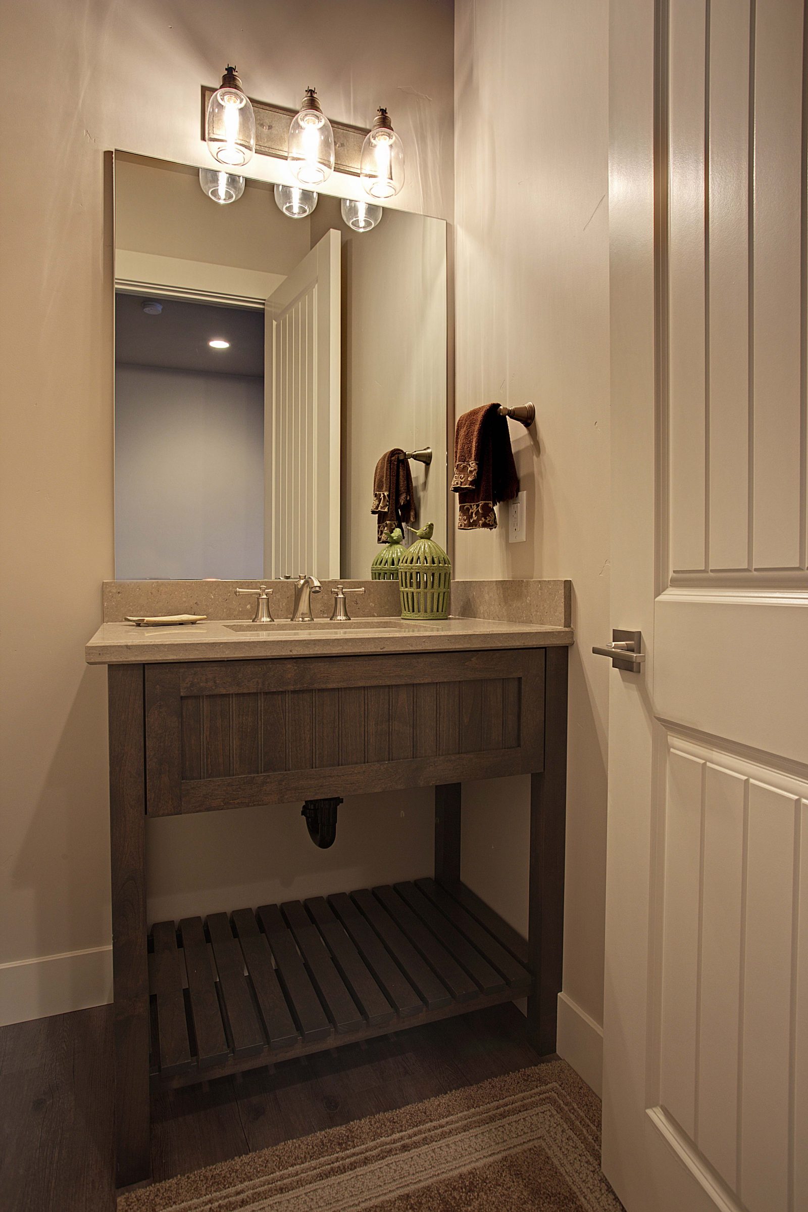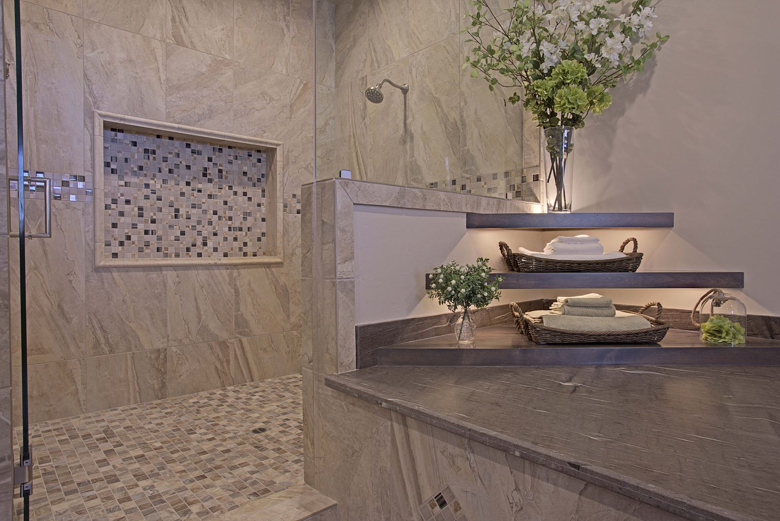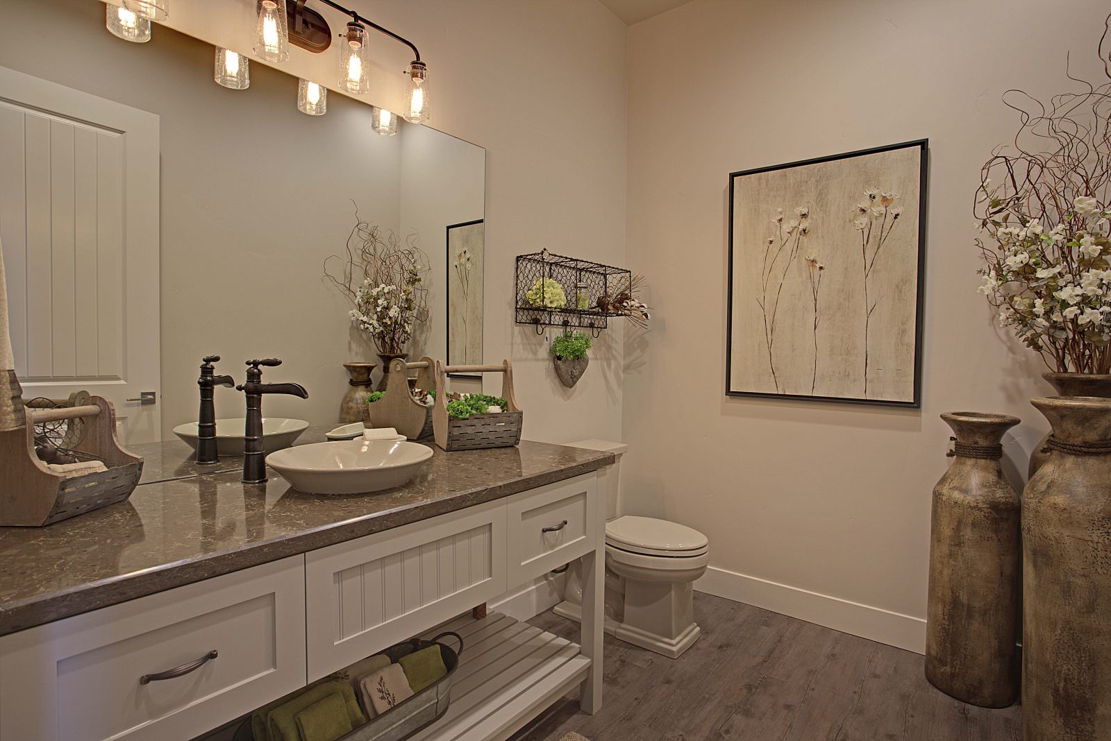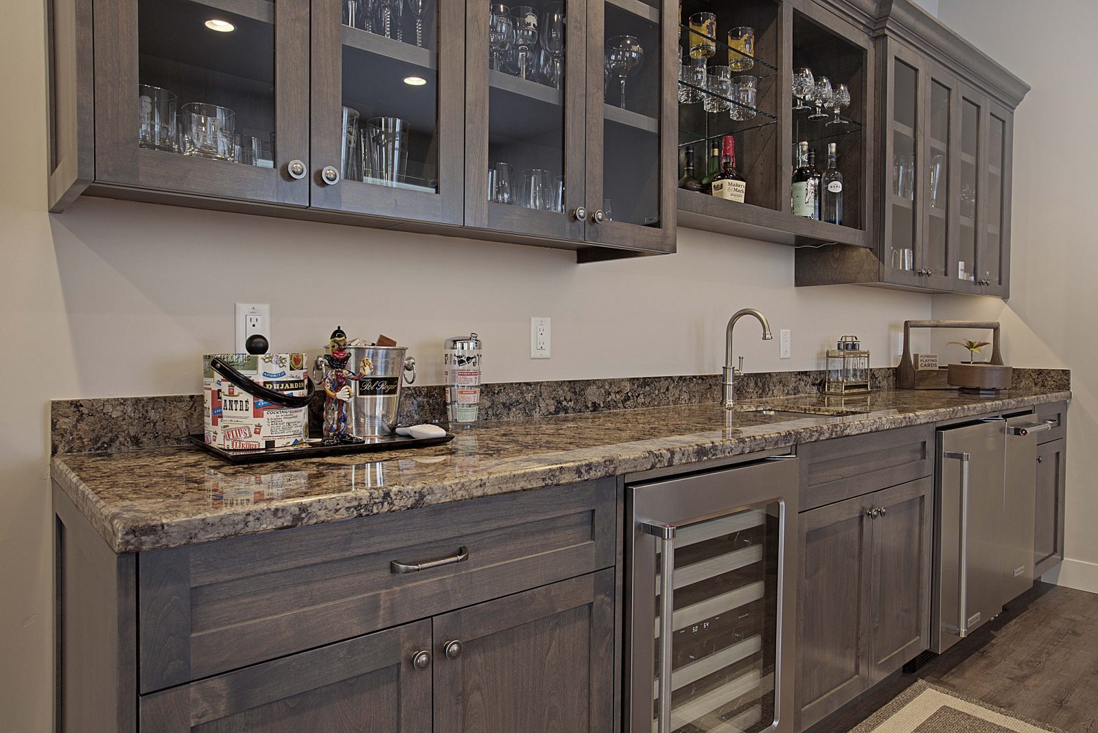 This 5,000 s.f. received a complete interior remodel and was a challenge due to the oversized rooms and overall rectangular shape. The kitchen was designed around existing skylights and windows maximizing all incoming light and taking full advantage of the spectacular views this property has to offer. One of the outstanding features of this home is the iron work. The stove hood, fireplace mantle and firebox are all custom made with matching iron materials. The iron is repeated in the lighting throughout the home. The drive up appeal has been transformed with new exterior paint and front door. Download the project overview pdf »
